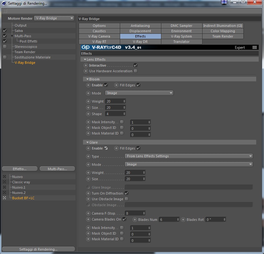 Direi che ho risolto! Il problema stava soltanto in una cosa molto semplice, il color mapping su "auto". Leggendo un altro tuo intervento ho impostato il multipass attivando post effetti, ho inserito "none" sul color mapping (essendo una immagine di bassa risoluzione ho attivato ...