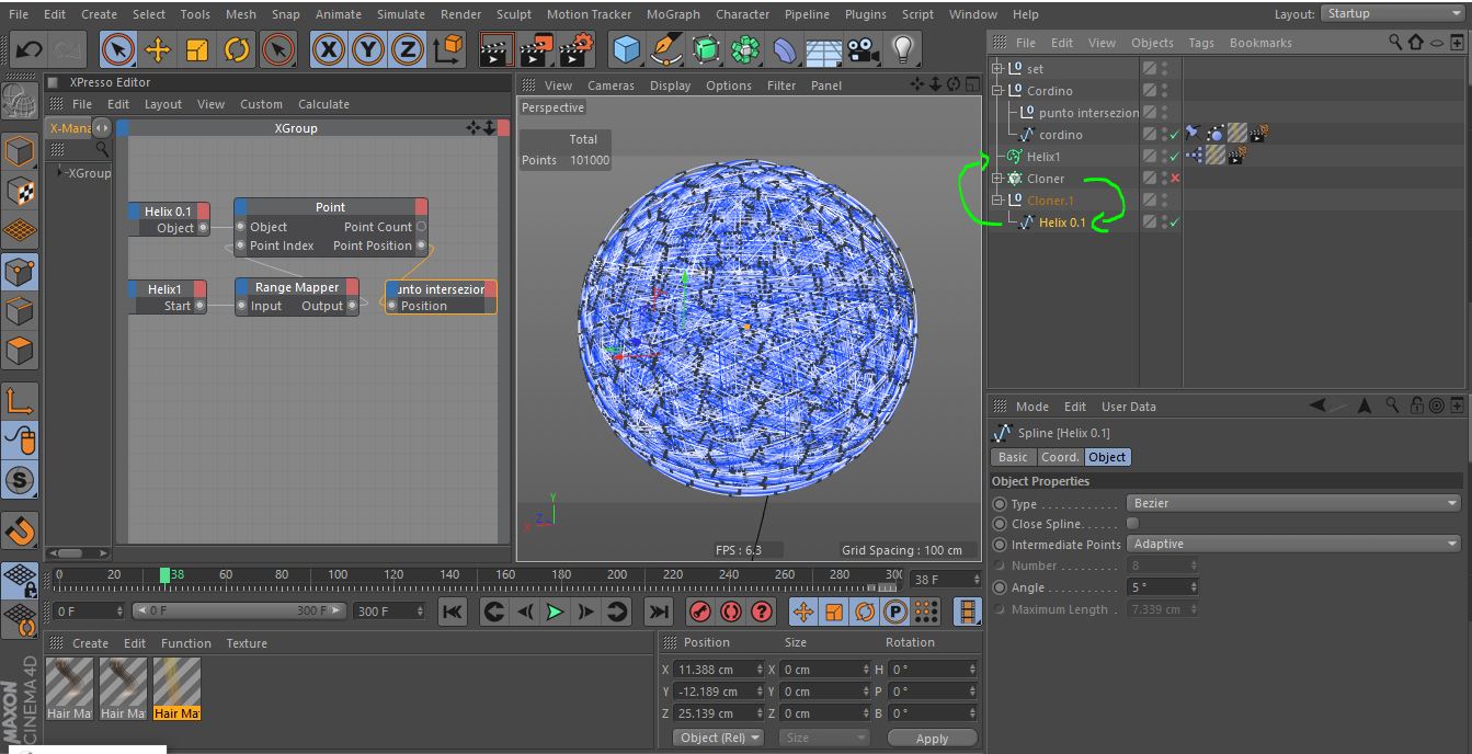 ma ho subito capito che anche volendo utilizzare una spline ( cloth e soft body risultano immediatamente inutilizzabili per l'elevato tempo di calcolo ) al punto in cui sono, si deve convertire quest'ultima in un vero e proprio capello ed utilizzare hair e i suoi nodi xpresso per gestire sicuramente più aspetti.