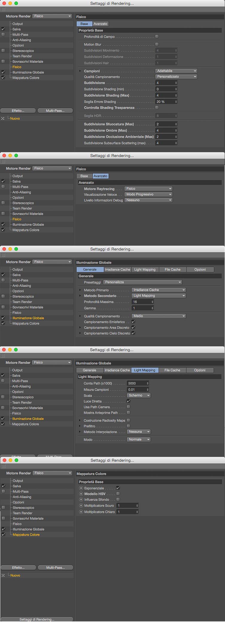 Ora proverò a impostare i parametri del render suggeriti mentre, avendo da poco ripreso a operare con C4D, mi rimane oscuro il discorso che hai fatto sulla suddivisione (luci ed ombre)....cortesemente potresti farmi capire meglio cosa intendi con suddivisione (luci e ombre) e quali parametri dovrei postare?