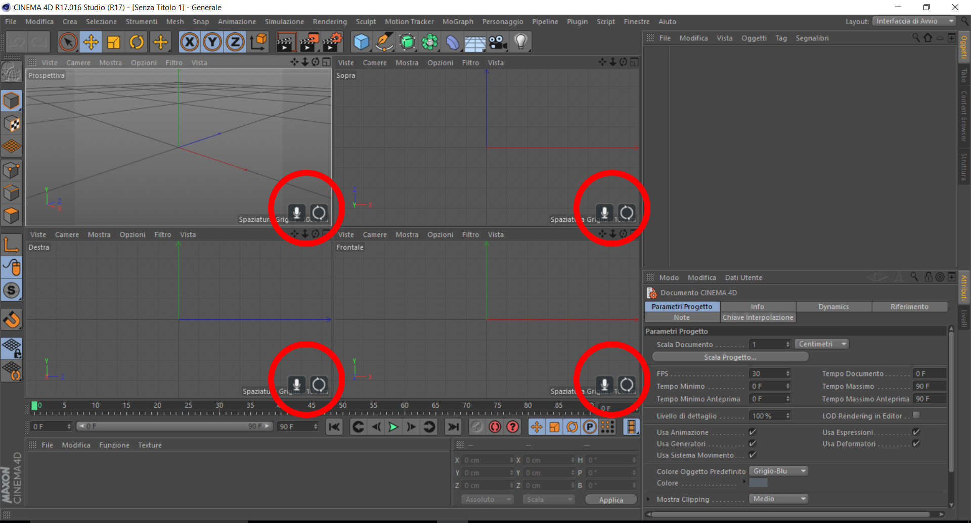 Dopo aver installato C4d R17 sul mio nuovo pc Asus serie N ho notato la comparsa di due simboli anomali nelle 4 viste (simbolo del microfono e della rotazione).