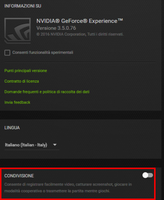 era proprio un'impostazione NVIDIA esterna.