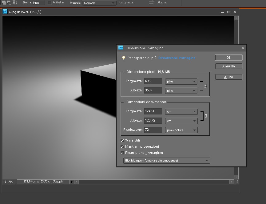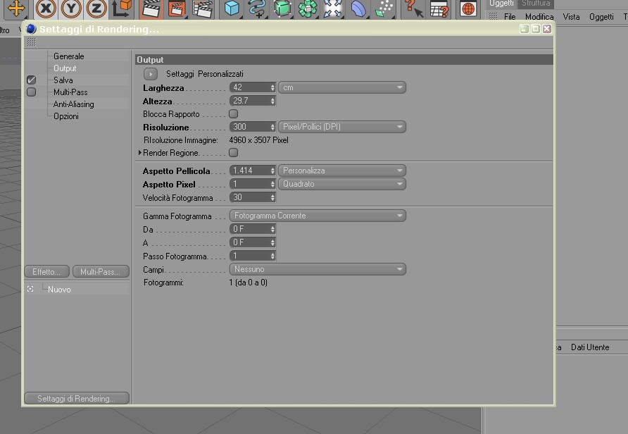 Esatto! Questo perché i DPI non sono un parametro che puoi assegnare ad una immagine come lo è la larghezza, o il formato (jpg, tiff etc.) o la profondità colore (8bit, 32 bit etc.) ma è un valore che indica il rapporto tra la dimesione in pixel dell'immagine e la dimensione di stampa - ossia - se vuoi un'immagine da 300 punti per pollice (dpi) grande quanto un A3, dovrai renderizzare 3507x4960 pixel. Ottenuta questa immagine se tu la stampi in A4 (quindi la metà dell'A3) non stai facendo altro che stamparla a 600 dpi - viceversa se la stampi in A2 (il doppio dell'A3) significa che la stamperai a 150 dpi. Questo ovviamente rimanendo invariata, abbiamo detto, la grandezza dell'immagine che abbiamo ottenuto cioè i 3507x4960pixel.fabio81 wrote:un A3 a 300 dpi corrisponde a 3508 x 4961 px giusto? però il render esce con 72