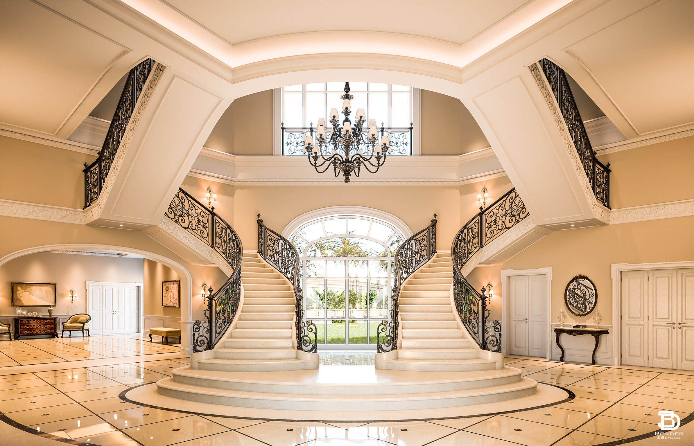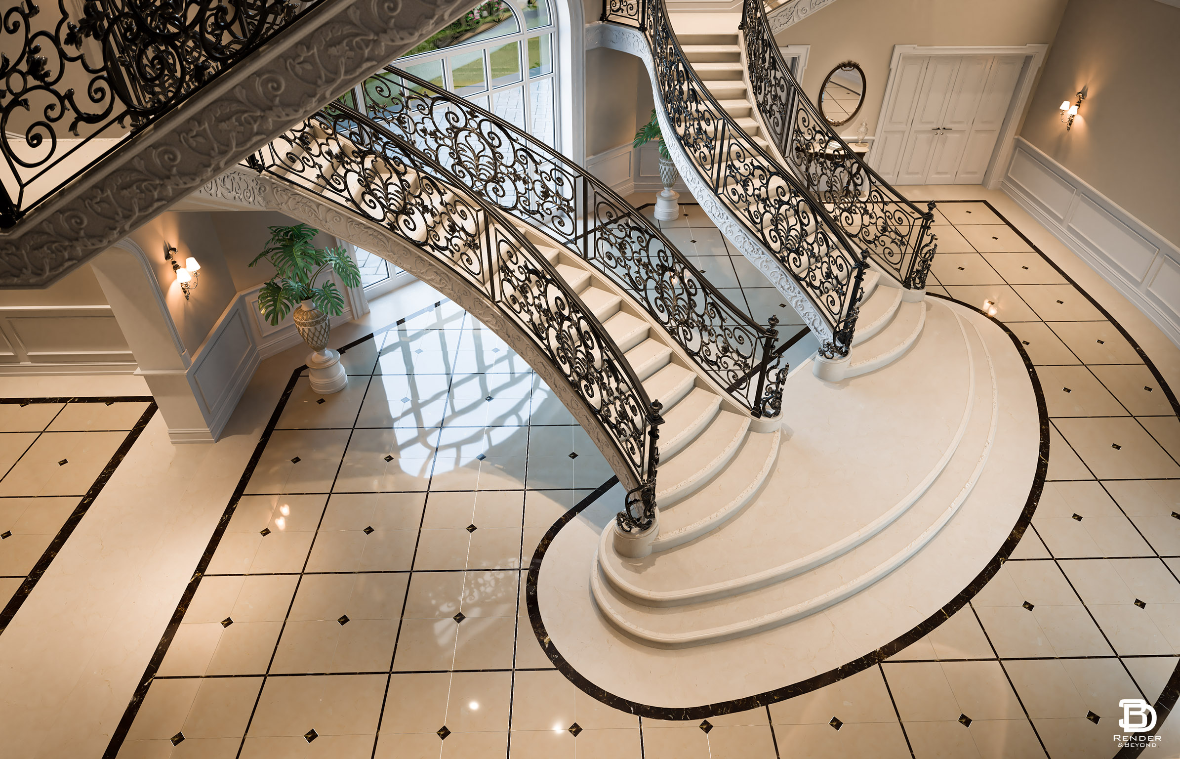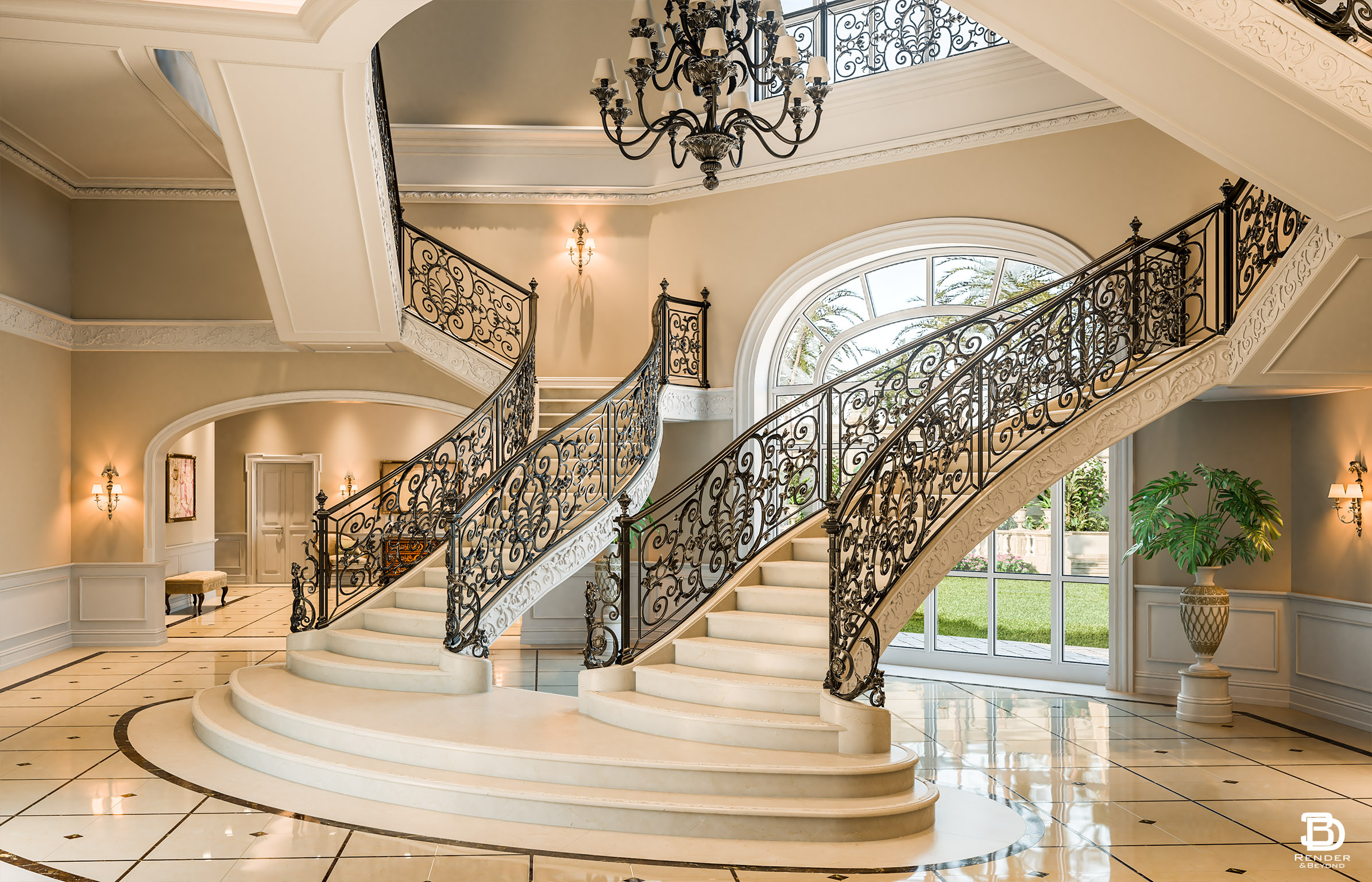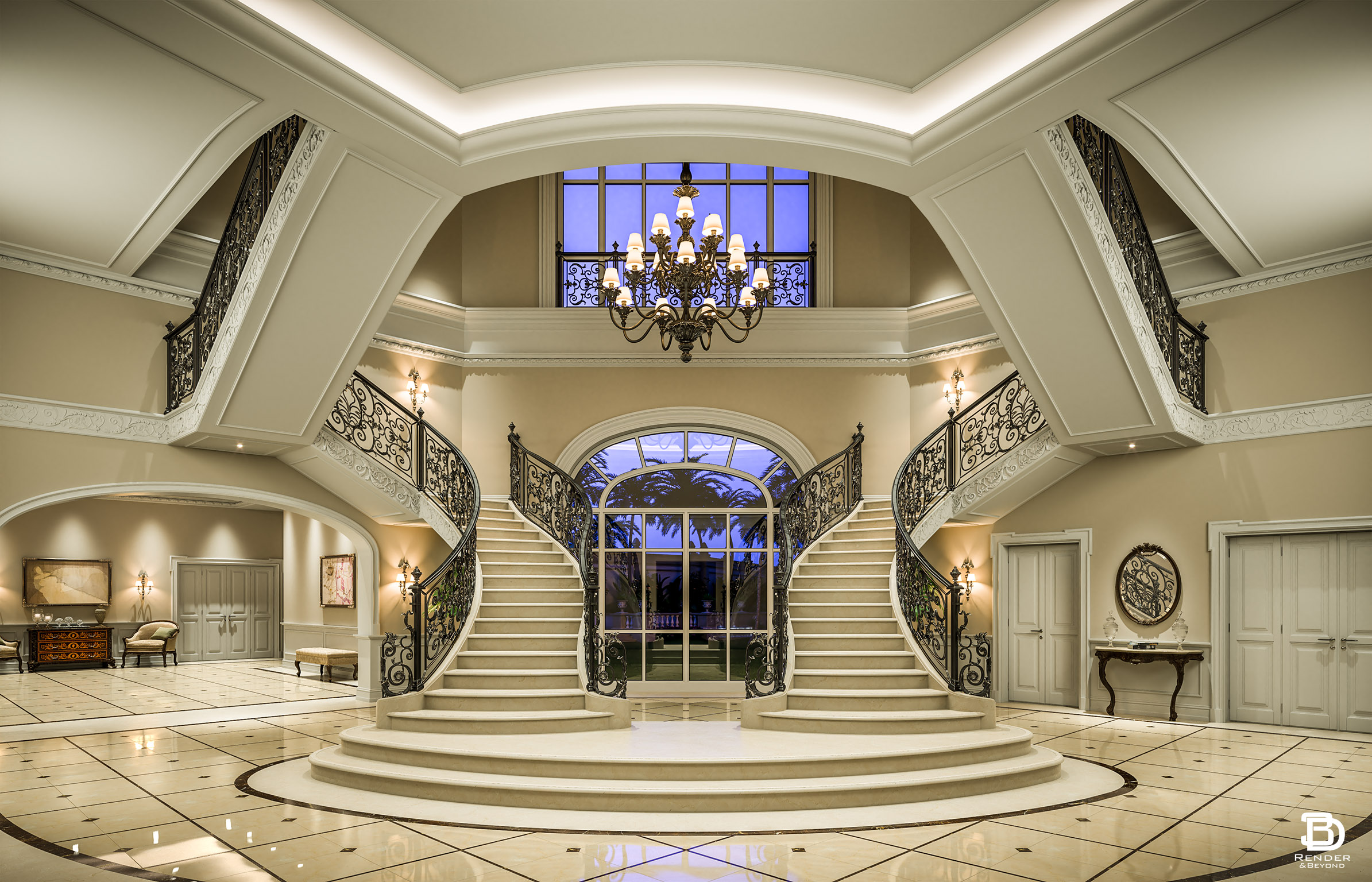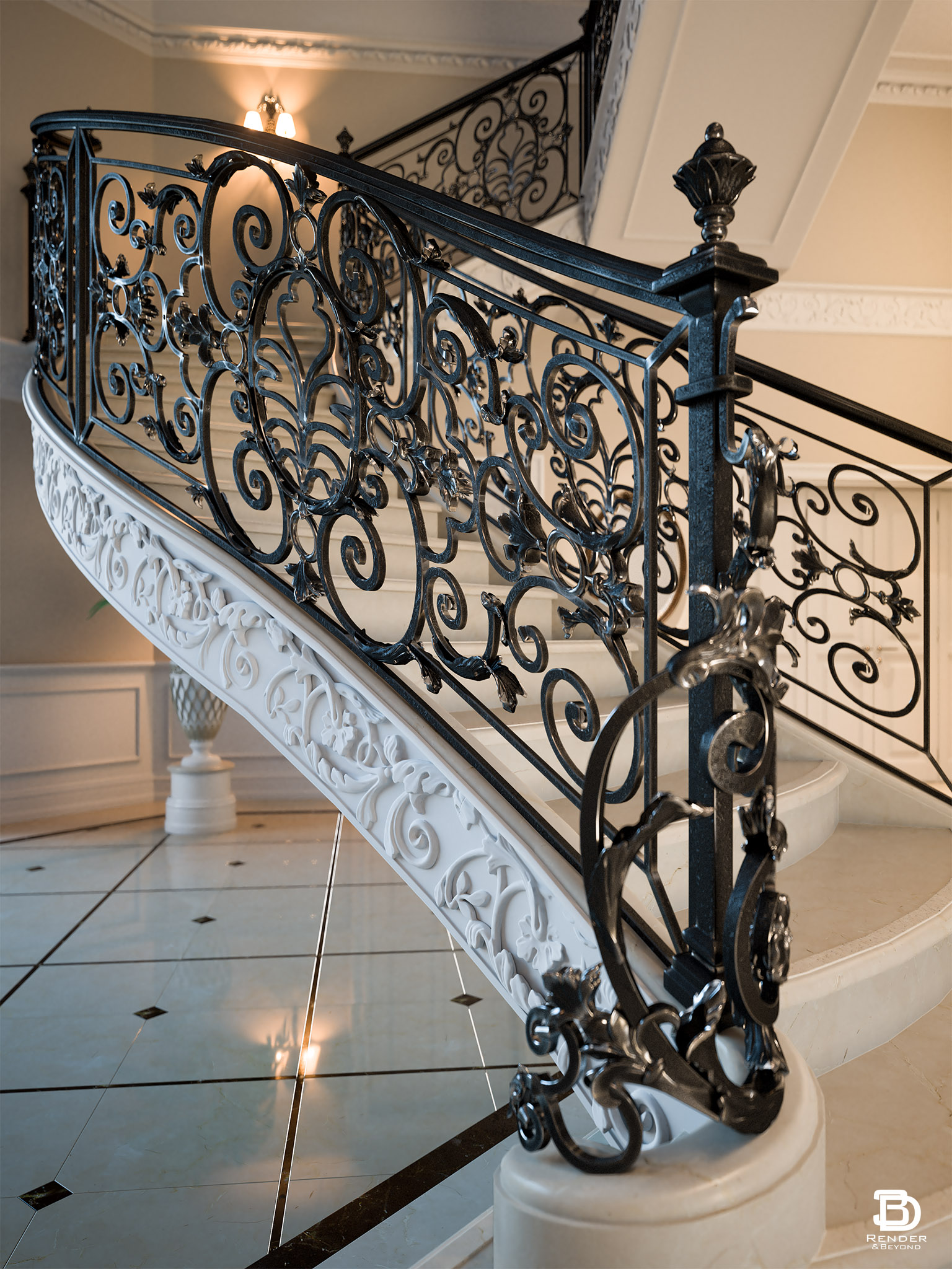Unica nota personale, nella versione notturna mi aspetterei che dalle grandi vetrate dietro le scale entrasse una dominante bluastra. Per il resto, lavoro molto buono.
