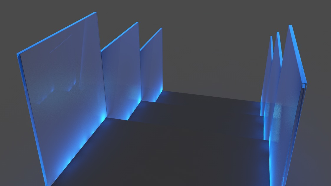 Qualcuno ha dei suggerimenti per realizzare con vray un materiale vetro che faccia un effetto tipo quello dell'immagine che allego? sono vetri con un'illuminazione a led dal basso che sembrano diventare dei vetri luminosi e "illuminanti"