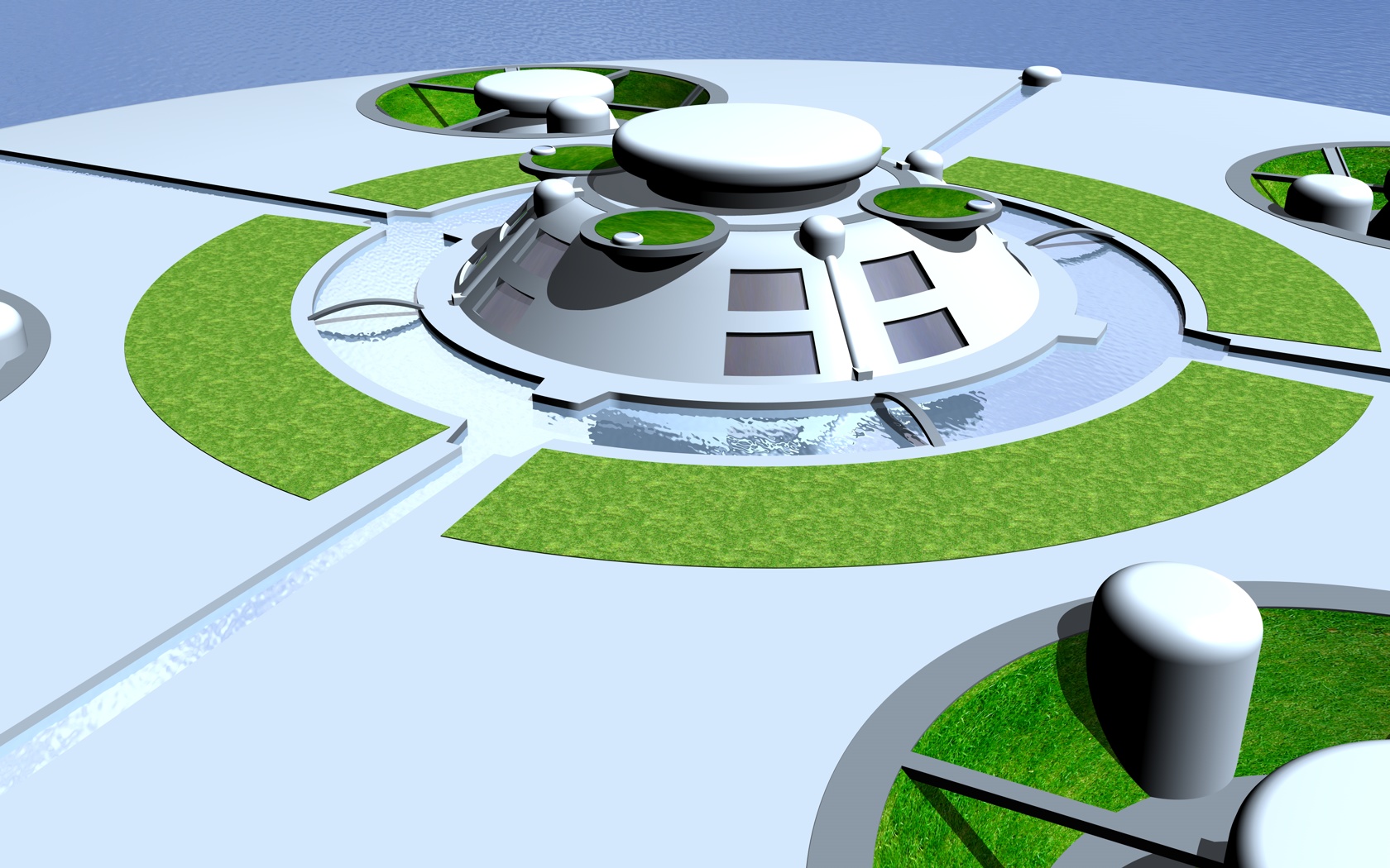 Come primo modello 3D ho preferito partire da qualcosa di semplice, ho preso spunto da quella che VUOLE essere la mia città autosufficente è ho ridimensionato tutto per poter lavorarci senza troppo complicazioni, in effetti è più un Villaggione e comunque Mono Core, penso che i sistemi energetici Idrici e fotovoltaici siano + che sufficenti a mantenere costante le riserve di energia. Pian piano prenderanno forma anche le zone dedicate allo stoccaggio energetico, che naturalmente posizionerò al di sotto della superfice.