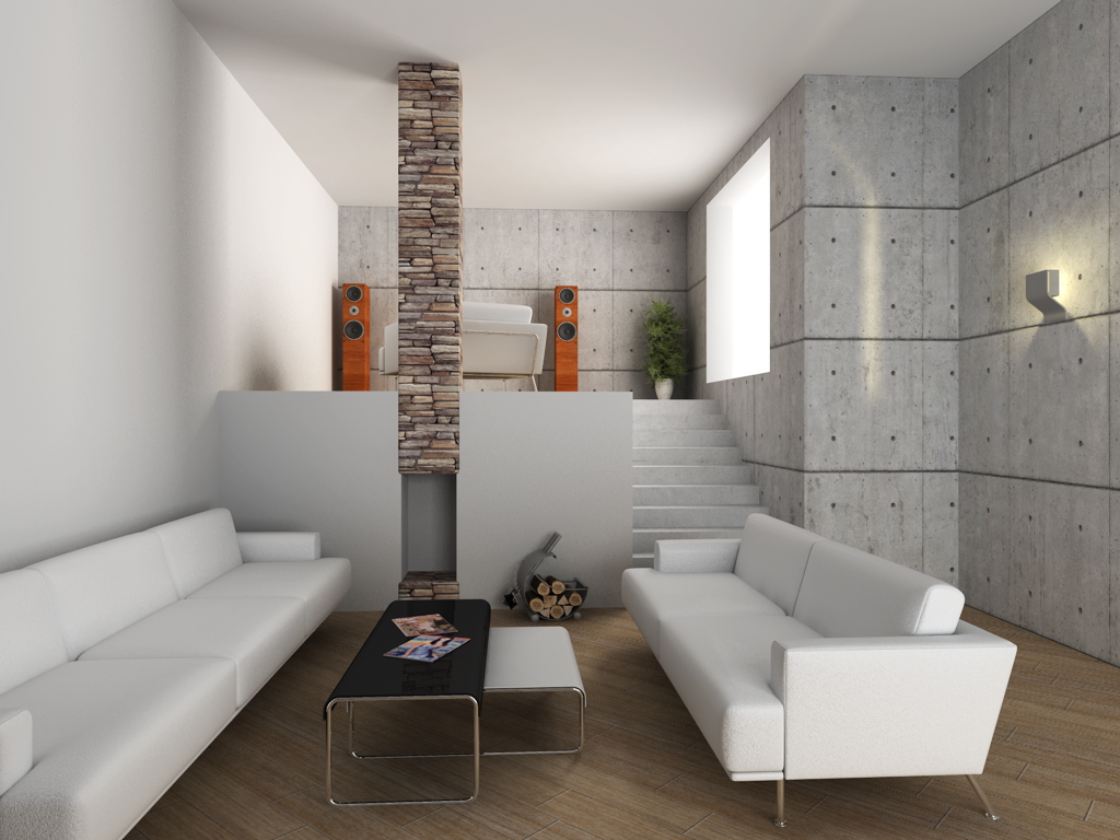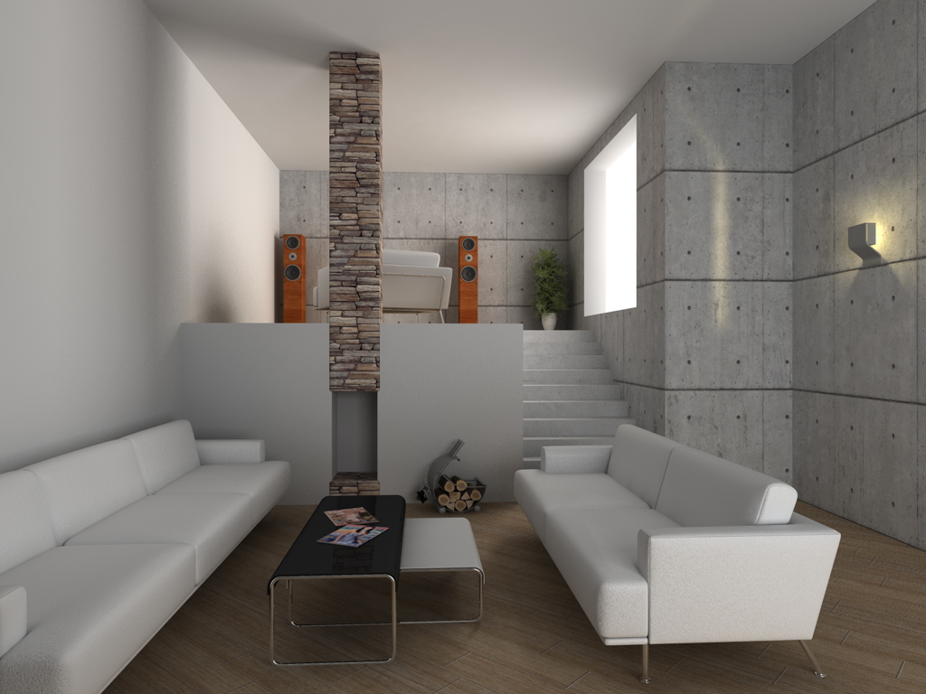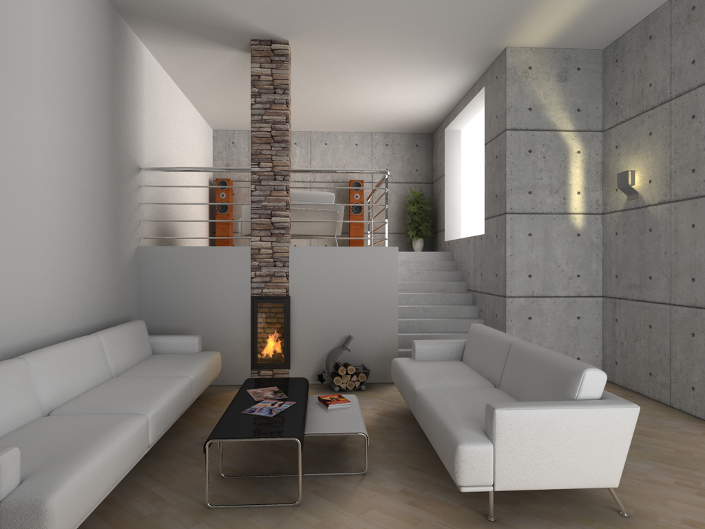 Allora... ho cambiato la tex e messo un pò di AO al parquet, sistemato la tex delle pareti, modificato un pò la lampada e avvicinata all'angolo, completato il caminetto e aggiunto la ringhiera alla zona rialzata.