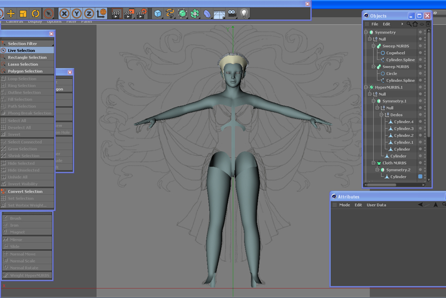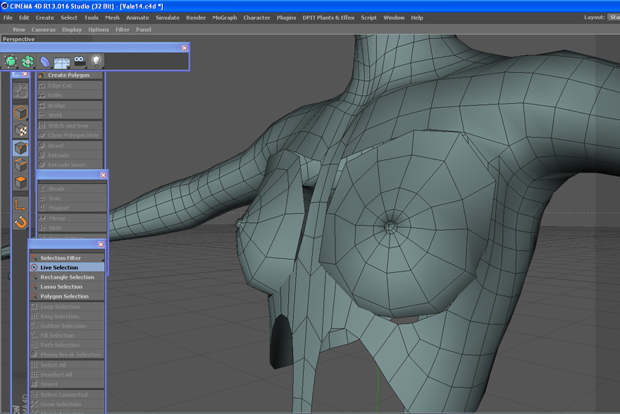 for breasts, "cleared " polygons from three sides, I put a tag cloth, fixed the the back points, and I gave "play"... This made to fall under its own weight has has! ... come on, in a natural and logical way