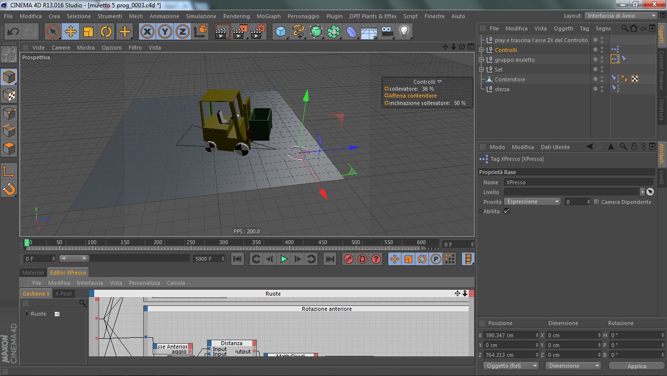 Quindi mi sono lanciato in questo Rig tutto in X-presso per animare il mezzo con un solo controllo...