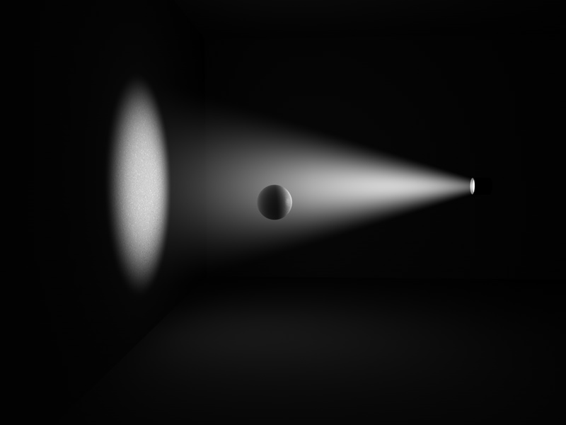 alberto, io credo che per quello che riguarda le tue prove, il problema risieda nel fatto che la visibilità è una proprietà distinta dalla luminosità ed è la luminosità che genera le ombre, quindi il fascio di luce che vedi proiettato nel tuo render, è dato dalla visibilità, ma la luminosità rimane occultata dietro all'oggetto che usi da proiettore.