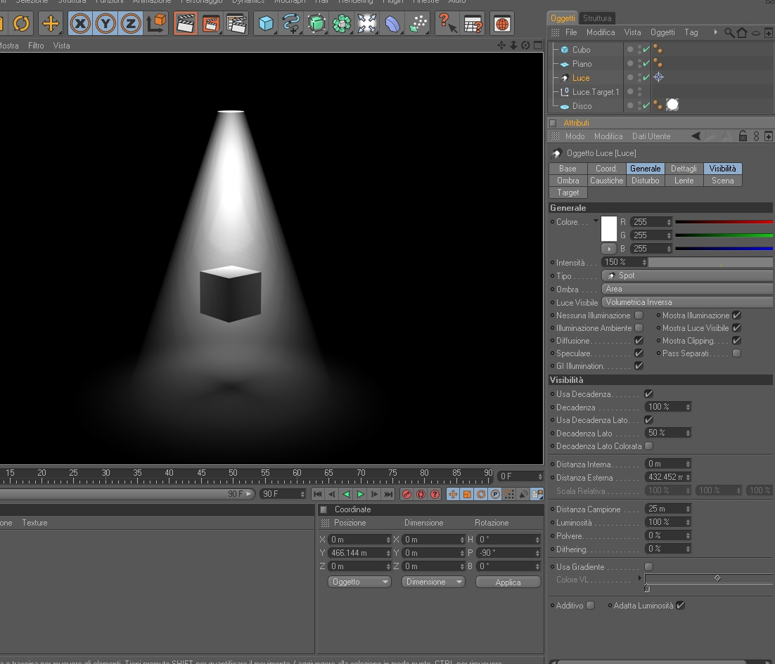 ho provato con il metodo 2 e cioè quello per cui si sposta lo spot dietro la lente del faretto e poi ho dato la modalità volumetrica inversa, ma praticamente, si vede la luce e il raggio di partenza è buono, ma non passa la luminosità, vi posto 2 esempi.