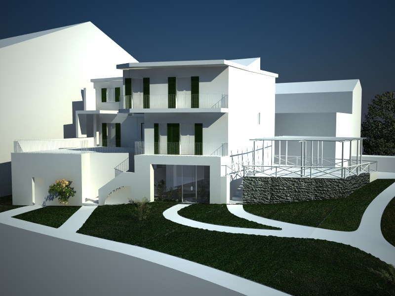 Poi, ma questa è sempre una mia opinione, sposterei il sole in modo che la facciata principale sia un pò più ombreggiata ..... comunque vedì tu, solo perchè così come ora sembra che non ci siano ombre... :D