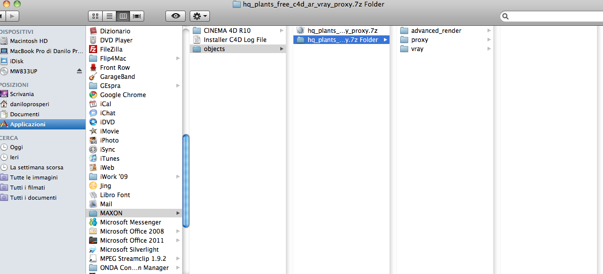 I've created the folder "objects" in Maxon folder and I putted the "hq_plants_.." folder into it