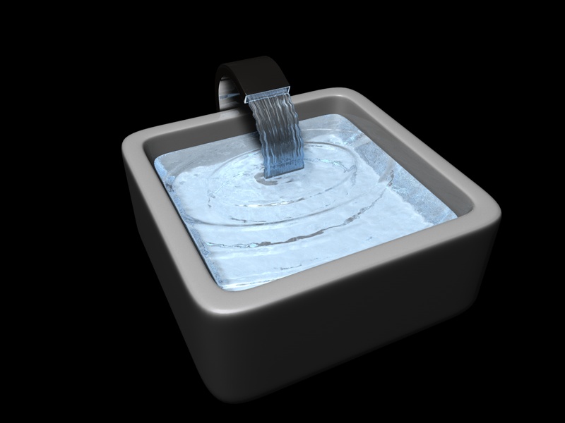 Ciao ragazzi, a tempo perso stavo provando a realizzare un lavandino all'inteno del quale sgorgasse un po' d'acqua, il risultato che ho ottenuto non mi soddisfa molto, come potrei fare per migliorarlo?
