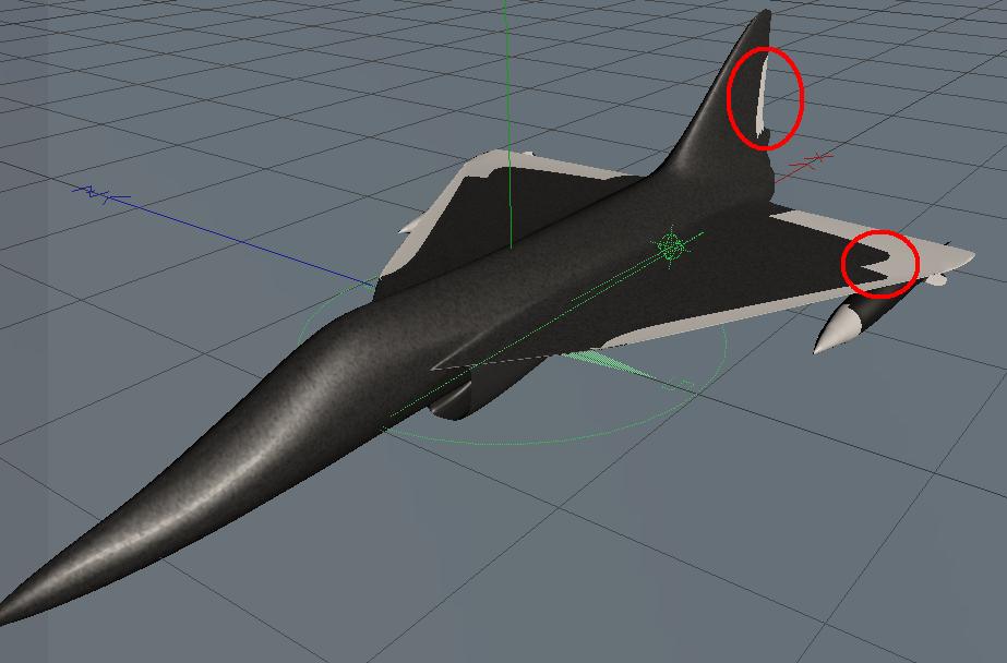 vedete i cerchi che ho fatto , ecco voglio che a quei punti il mio jet si vedano questi tagli ,questa specie di suddivisione di pezzi , come potrei farlo con cinema ?