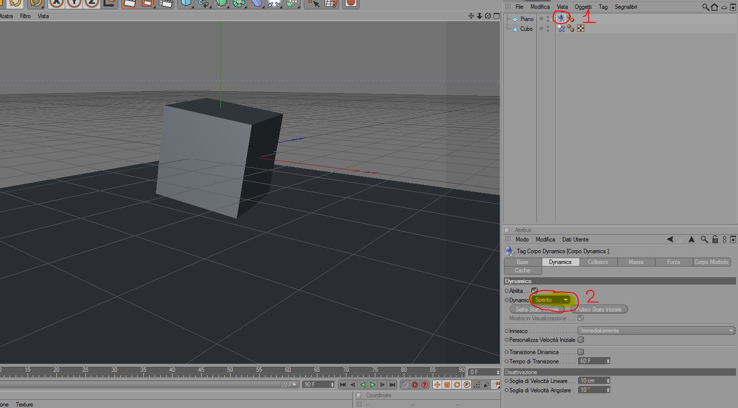 domanda semplice semplice dovrei fare un'animazione di collisione quindi vado su il nuovo tag dinamico per il corpo rigido i aggiungo tra 2 primitive es cubo e piano ma quando faccio play tutti e due vanno giu per gravità come faccio ad impostare che il piano stia fermo?????