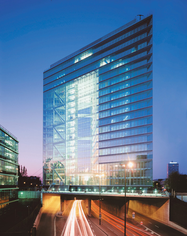 La Commerzbank di Francoforte, la GSW tower a Berlino, la Stadttor di Düsseldorf, il Reichstag e cosí via sono tutti edifici che hanno via via frantumato record di consumi energetici, riduzione delle emissioni e cosí via, tramite facciate ventilate attive e passive, solai usati come masse termiche, cisterne termiche e quant´altro, anche senza legno sulle facciate o fiorellini sui balconi ;).
