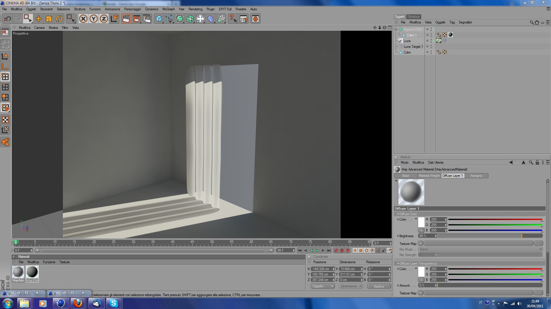 fatto, ma ancora nulla...si vede l'ombra sul materiale, ma non passa la luce attraverso... :\