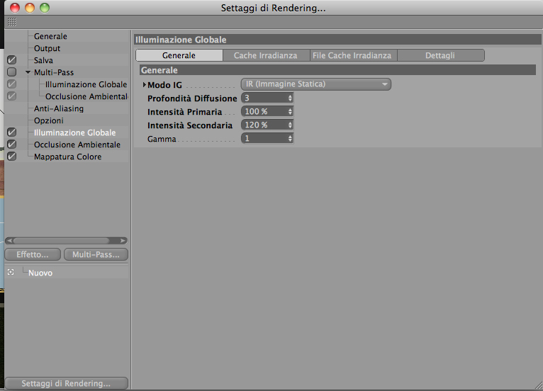 sono un nuovo utente e anche un novellino di Cinema. Sono alle prese con un'architettura e ho iniziato a testare l'illuminazione. Seguendo varie guide ho impostato un'illuminazione globale con cielo Hdri, ambiente e luce solare. Per l'IG ho impostato un QMC con profondità 2, intensità 100% e campioni 64. Purtroppo il risultato (nonostante non abbia ancora ultimato con le textures) non è soddisfacente per quanto riguarda il vetro che non da alcuna trasparenza. Ho provato a posizionare all'interno della stanza una luce omni ma il risultato non è cambiato.