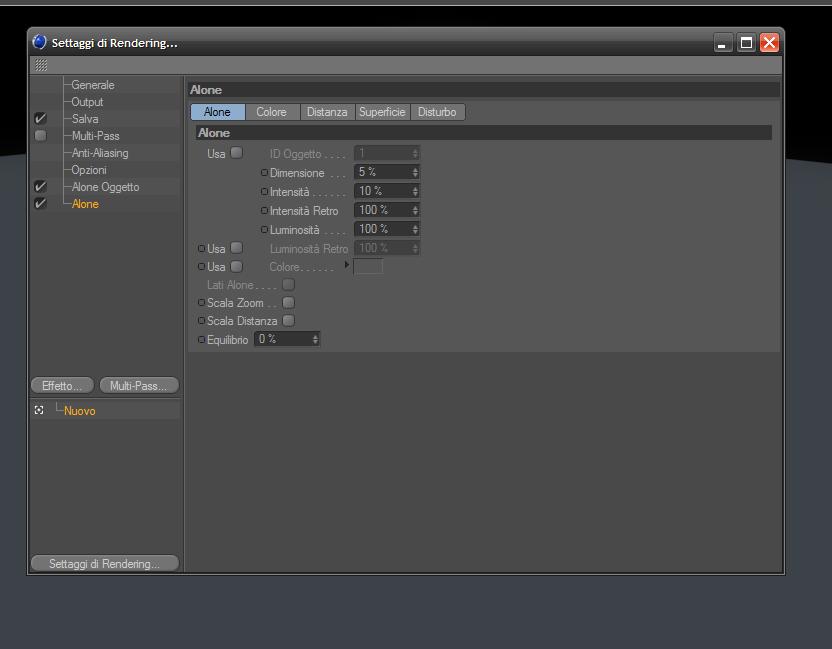 Perchè nei parametri di rendering hai aggiunto "Alone" e "Alone Oggetto", quando Arkimed ti ha detto di usare un Materiale con Canale Glow (Alone) attivo? Se ci fosse stato bisogno di attivare qualcosa nei parametri di rendering te lo avrebbe detto, no? E Renxo ti ha detto di attivare la GI nei parametri di rendering, solo la GI.............
