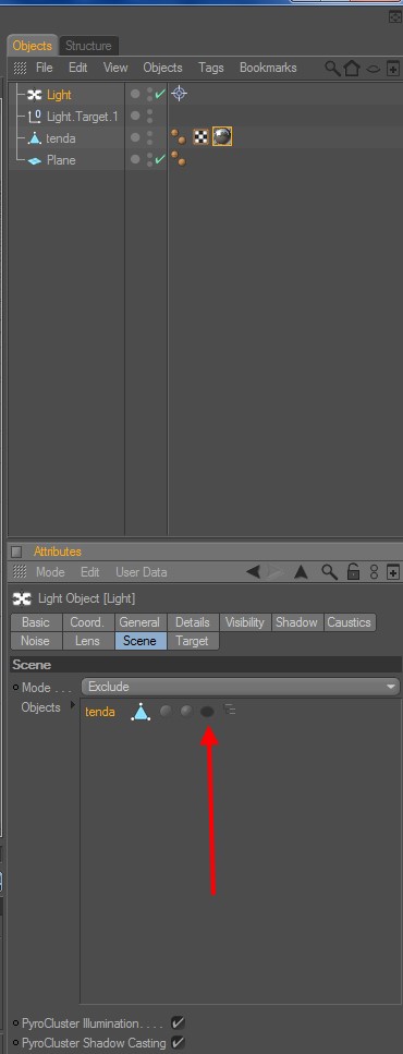 se hai una luce area prima della tenda devi metterla dopo... oppure escludere la tenda dall'illuminazione della stessa