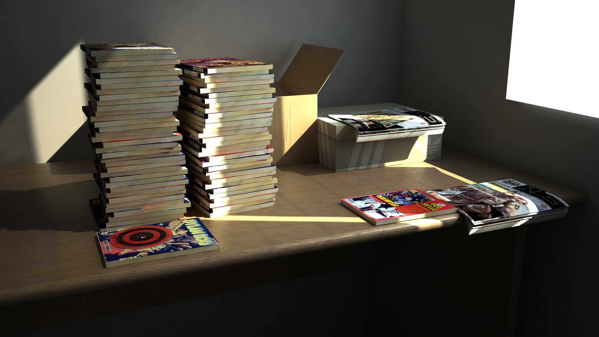 i dylan dog sono dei semplici cubi, l'ho scritto sopra che sono partito dalle cose semplici, adesso sto modellando le converse all-star (scarpe) ma li utilizzerò poco bodypaint.