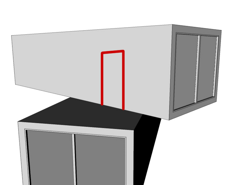 Si tratta di due cubi (5 x 3,3h x 15) sovrapposti e poi ruotati che andranno a creare la struttura principale.