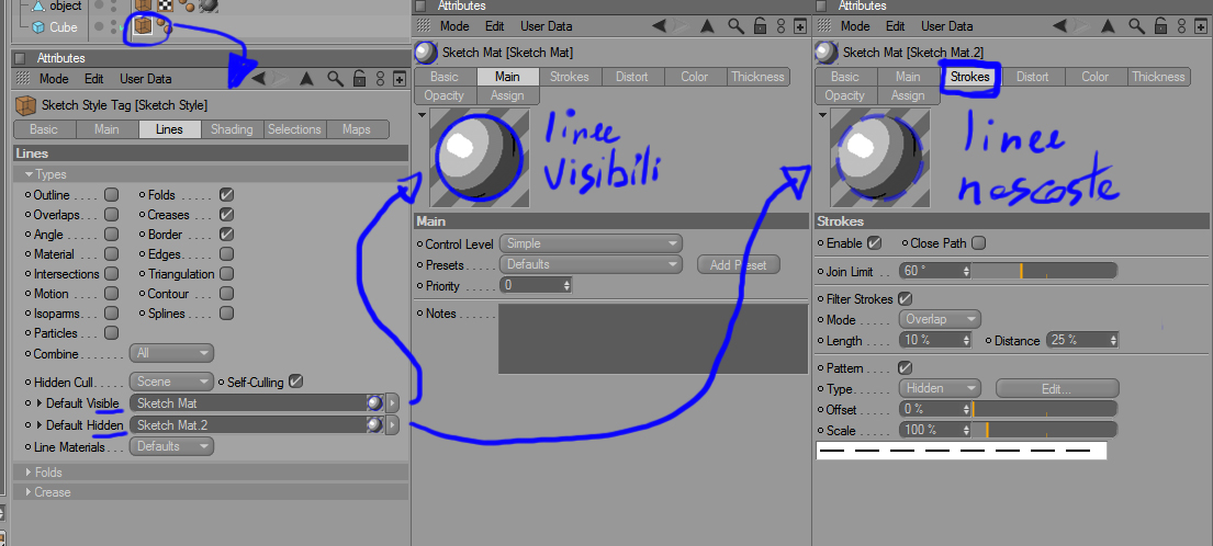 in linea di massima sì, nel pannello del materiale Sketch puoi regolare l'opacità del tratto nell'apposito pannello Opacity [credo sia Trasparenza in Italiano...]. [CASO2]è possibile dare trasparenza ai materiali sketch?