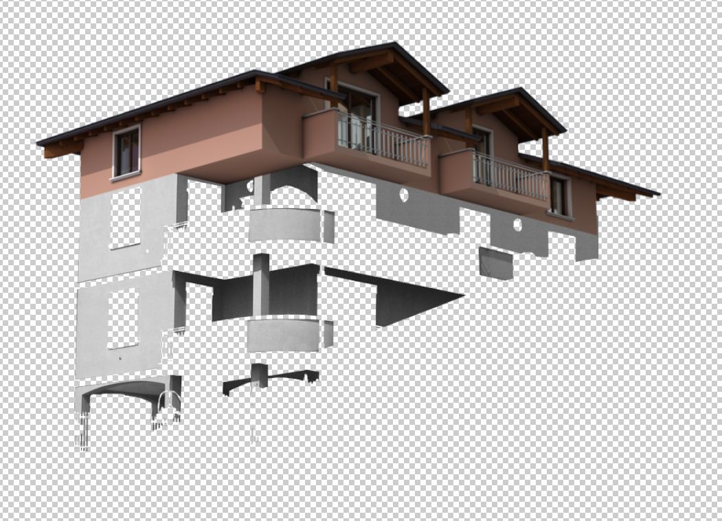 Per spiegarmi meglio...nell'immagine allegata c'è il mio modello 3D renderizzato e la parte restante in bianco e nero è la selezione della foto che mi interessa colorare...c'è magari un modo per applicare a quei pezzi di casa un materiale, in modo tale che si renderizzi tutto insieme e il colore sia uniforme?