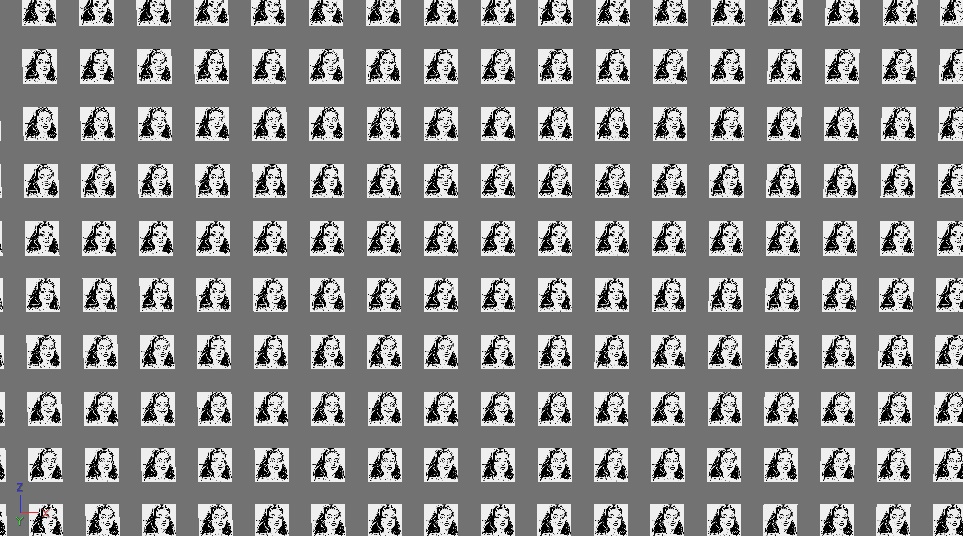 prendi un piano, lo fai proporzionato alla grandezza dell'immagine e lo dividi in funzione del numero di "carte" che vuoi ottenere, sempre rispettando le proporzioni.. rendi modificabile, estrudi internamente senza preservare i gruppi, inverti selezione e cancelli: così hai un oggetto unico formato da tanti rettangoli separati. Se li vuoi più distanziati puoi anche cancellare una riga si ed una no, anziché estrudere internamente.