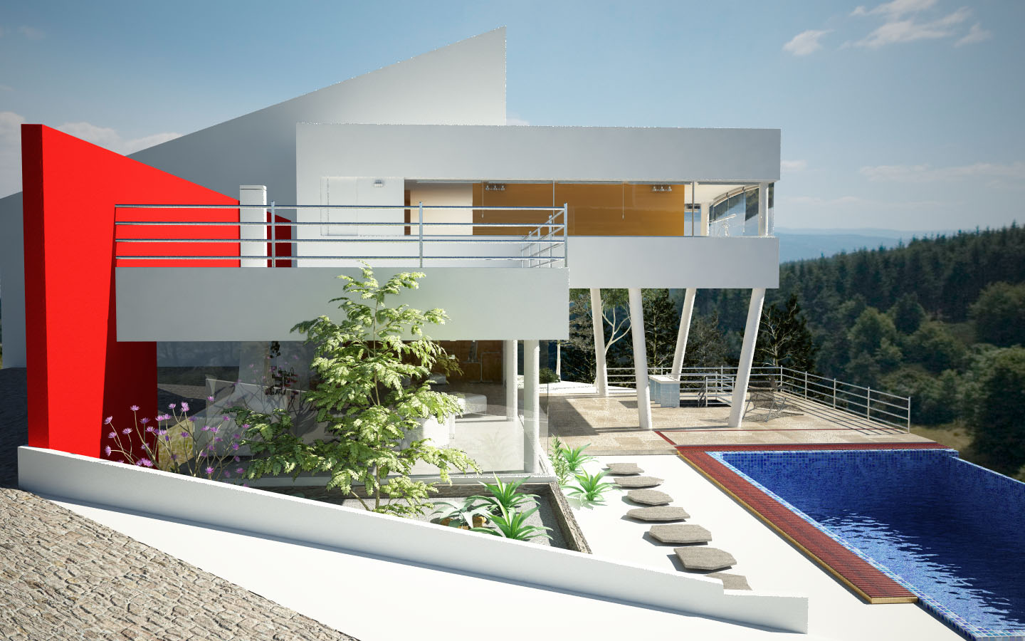 Salve a tutti,è la prima volta che scrivo in un forum ma è da molto che vi leggo.sono qui per chiedervi aiuto.è da un pò ormai che mi sono avvicinato al 3d prima per curiosità divenuta poi passione.i programmi che uso sono principalmente c4d e vray.ora è da un pò che cerco di realizzare un esterno con una buona resa ma a differenza degli interni ho parecchi problemi a raggiungerla.vi posto le immagini del lavoro a cui sto dedicandomi in questi giorni e vi chiedo come potrei migliorare la resa?nel forum vedo immagini a cui non riesco nemmeno ad avvicinarmi e vorrei capire su cosa sbaglio maggiormente.ecco le immagini.ovviamente devo ancora finire quindi lasciate perdere alcuni dettagli di modellazione o mancanze poichè le aggiungerò prima possibile.l'erba al momento non riesco a realizzarla con hair per la scarsa potenza del mio pc,aspetto un upgrade per aggiungerla,le caustiche in piscina non riesco a generarle.ci ho provato in tutti i modi,dopo averle attivate dal pannello del rendering ho provato a modificare i valori seguendo anche tutorial,ho provato a modificare il materiale acqua ed a cambiarne lo spessore ma niente!suggerimenti?non sono soddisfatto dei muri,sopratutto quello rosso...