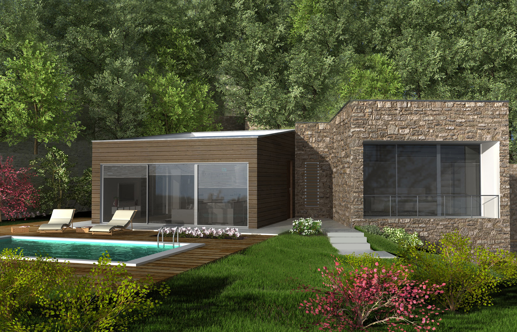 la zona del retro casa nella zona sinistra è un pò spoglia a confronto della parte in alto. si vede il muro del terrazzamento unpò "piatto".