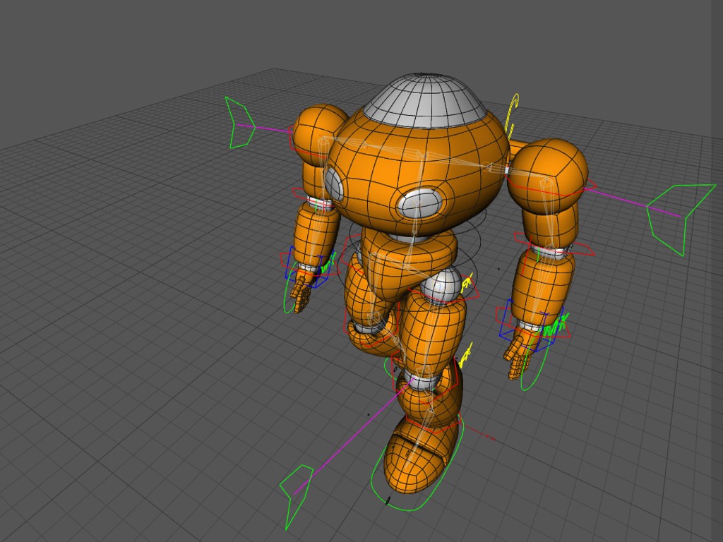 Dopo svariati tentativi con expresso, constraints della versione 10,5 son passato alla release 13 (demo) per studiare i nuovi tools (tag protection, Gimbal rotation, pole vector (R12)) che mi permettono senza troppi preamboli e giramenti di testa di ottenere un rig manuale decisamente più stabile e in minor tempo.
