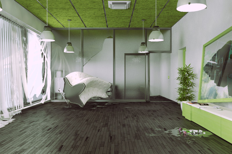 di fatto la nuova scena sarà il risultato del passaggio di alcuni loschi figuri che sono penetrati nell'edificio e hanno messo a soqquadro tutto.