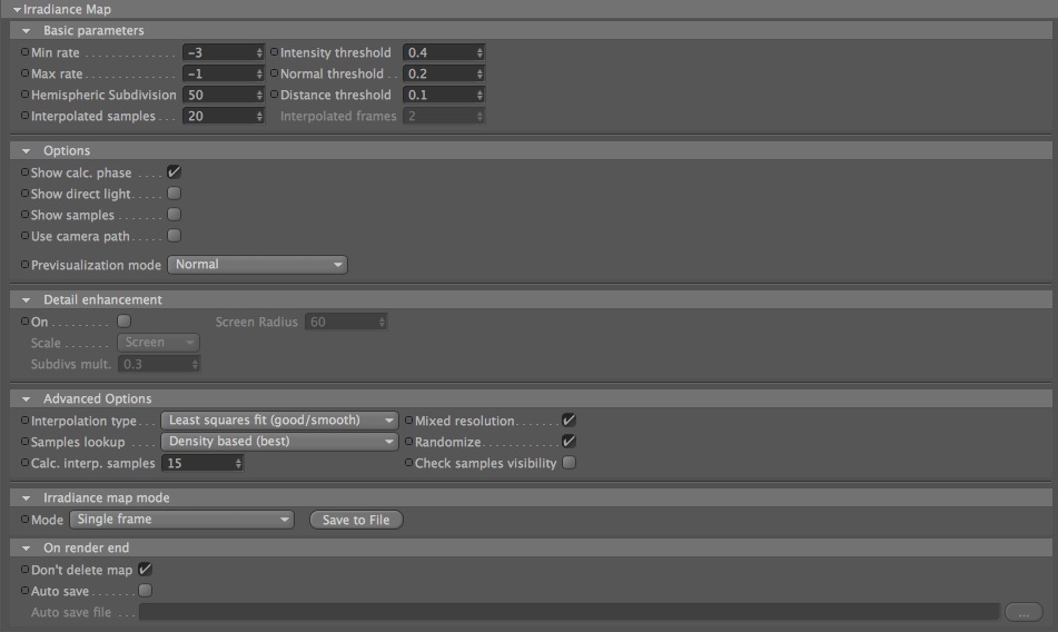 Posso darti un 2 consigli sulle impostazioni di rendering, inanto metterei nel parametro color mapping solamente exponential, nella laight cache spunta subdivision e metti al posto di 1000 850 per alleggerire un po il calcolo al momento del rendering, nell'iradiance pam porta il valore a 0 del canale max rate e (l'hemispheric a 70 ma solo nel rendering finale perchè lo appesantisce un po).