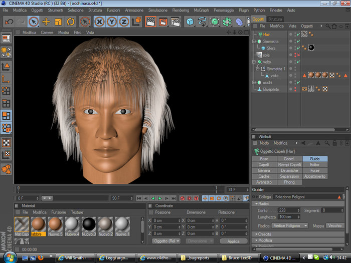 Ciao Rochi grazie, si effettivamente ora cadono però sono bianchi etc etc quali parametri devo toccare per dargli la lunghezza che dico io e per pettinarli?