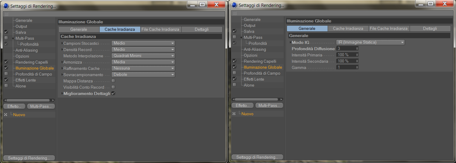 Se tu taggi quegli oggetti abbassando appunto quelle 2 percentuali, la GI e' molto veloce, anche se avrai un po di rallentamento finita la GI perche' ti ho fatto attivare il miglioramento dei dettagli, una specie di occlusione ambientale piu bella.
