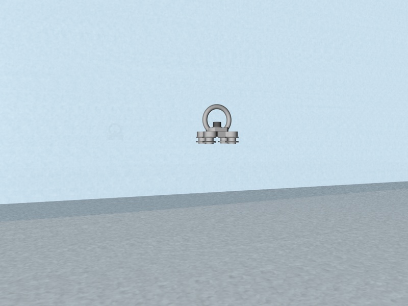 Il piano pavimento e la parete di sfondo, sono dure piani con materiale vetro leggermente azzurrato con rilievo, trasparenza e riflessione attivi.