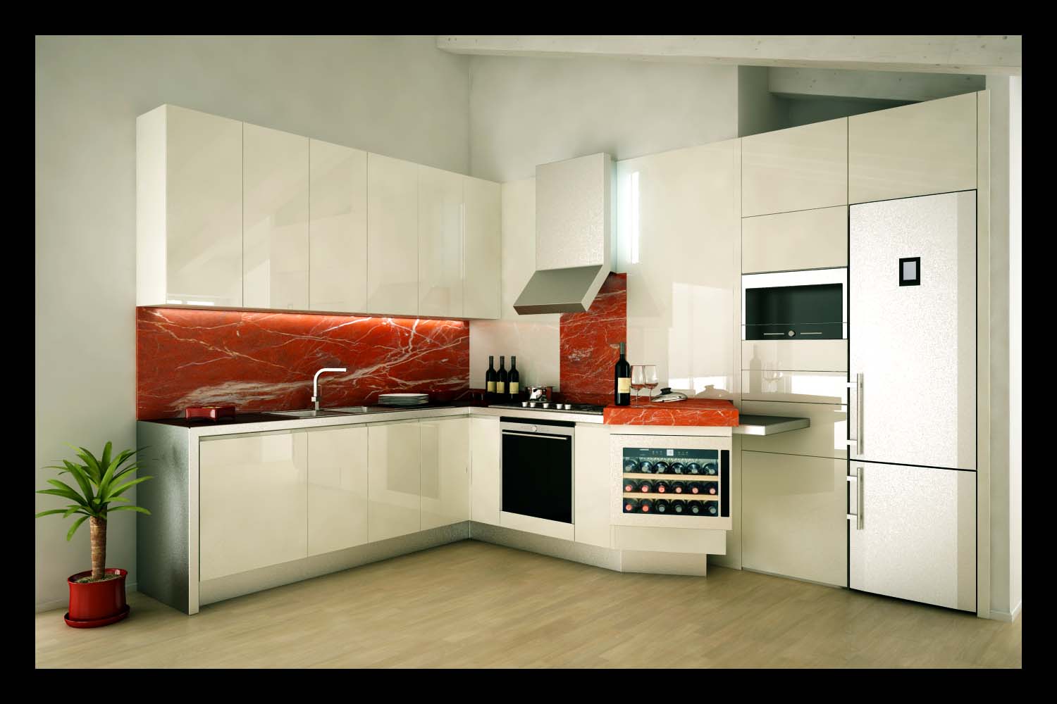 Cmq prossima sarà la modifica dell'aggiunta di una spalla in marmo (sempre rosso) sulla parete della cappa larga come squest'ultima!