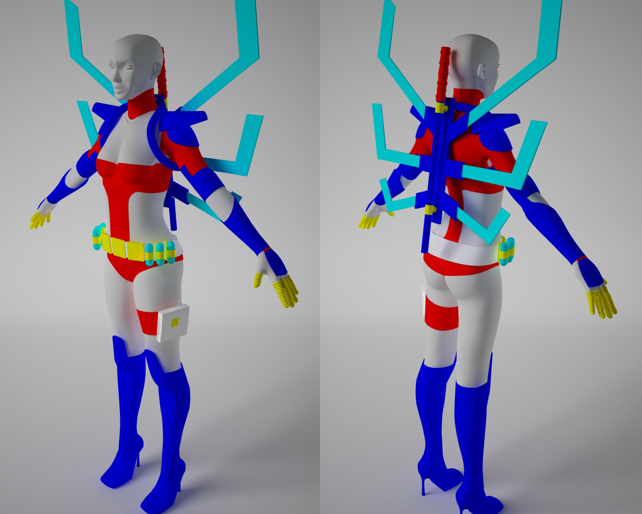 il personaggio (mi sembra di notare) si inserisce in quel contesto di eroi ed eroine (dimmi se sbaglio, ne so molto poco) in cui le ragazze sono tutte alte, magre, con seni prosperosi e vitini da favola e fianchi (natiche) curvi e sexy, mentre i ragazzi (gli eroi) sono sempre muscolosi e con le spalle larghe, collo taurino e gambe da culturista.