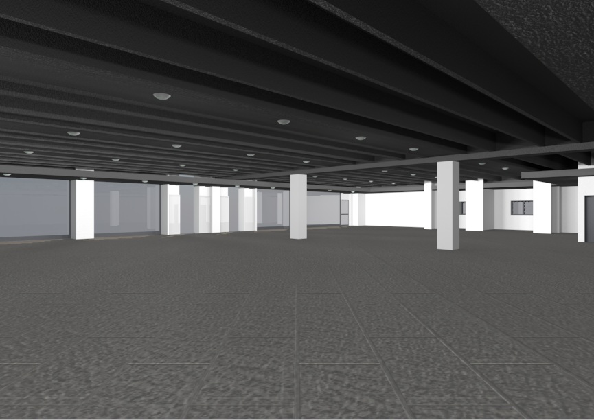 Pavimenti da progetto sono 30x60 grigio chiaro, controsoffitti neri, e pareti bianche..