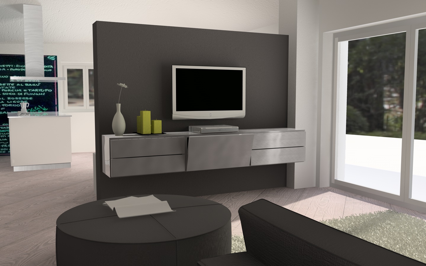 SALOTTO: vista mobile tv (sullo sfondo si intravede la cucina)