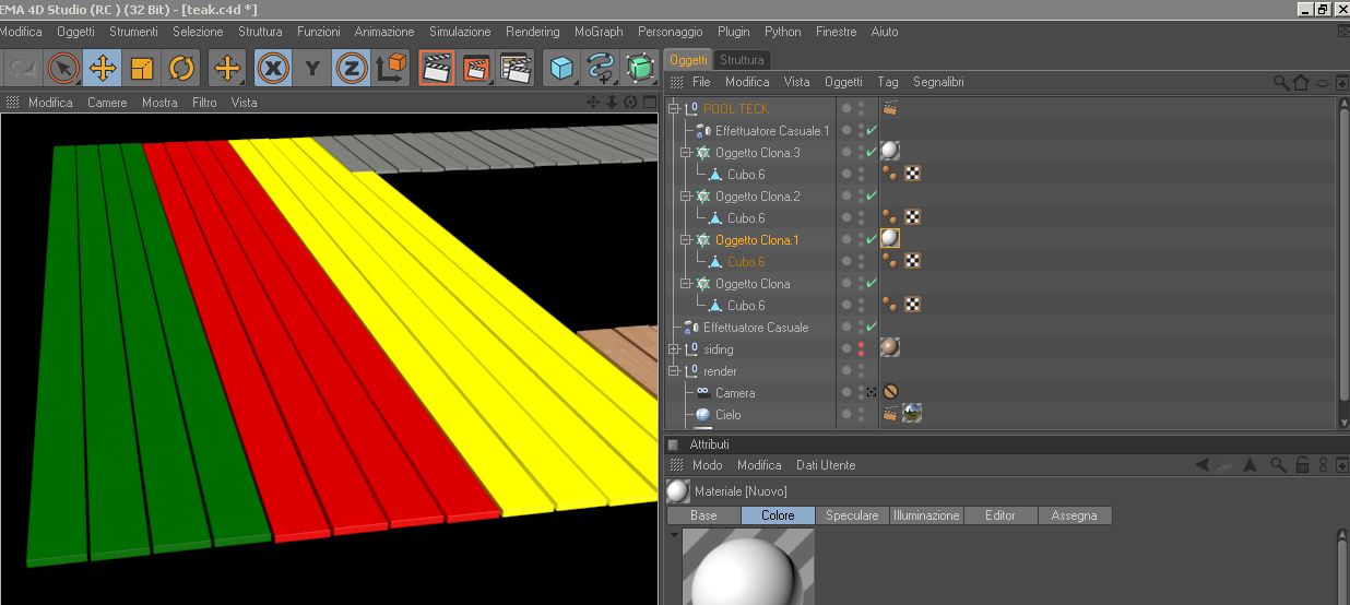 L'immagine che hai postato mi piace...io però per fare il mio teak ho creato una tavola e l'ho duplicata con mograph...come faccio ad alternare i materiali come dici tu?avresti mica un file di esempio da postare così vedo come si fa?oppure ti posto un file con solo il teak della mia scena...grazie