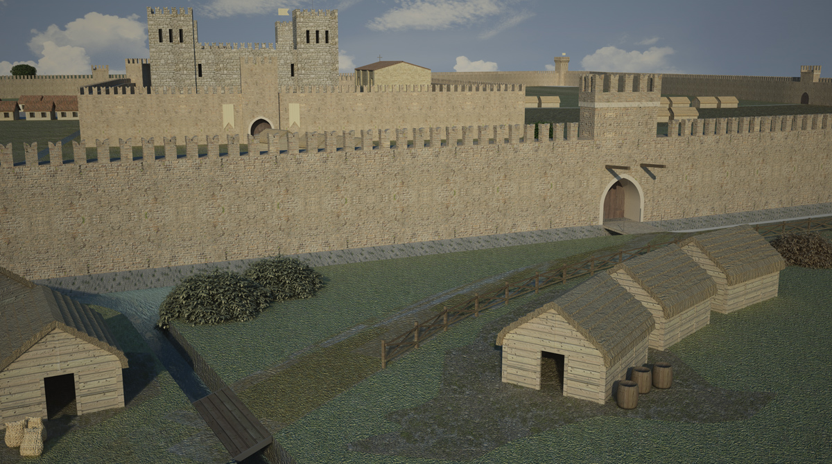 devo realizzare una serie di render relativi alla ricostruzione storica di un castello medievale. I render saranno di 'contorno' ad una pubblicazione sulla storia del castello della mia città (castello non più esistente, quindi è un lavoro di pura ricostruzione storica). In allegato una delle immagini tipo, quello che mi manca e che sto tentando di raggiungere da giorni è una resa più 'medievale' appunto.