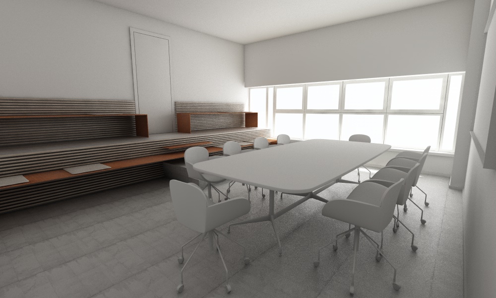 io per prima cosa proverei ad inclinare meno il sole, in modo che entri di più nel locale e possa "rimbalzare" su più oggetti, dando un taglio di luce netto,
