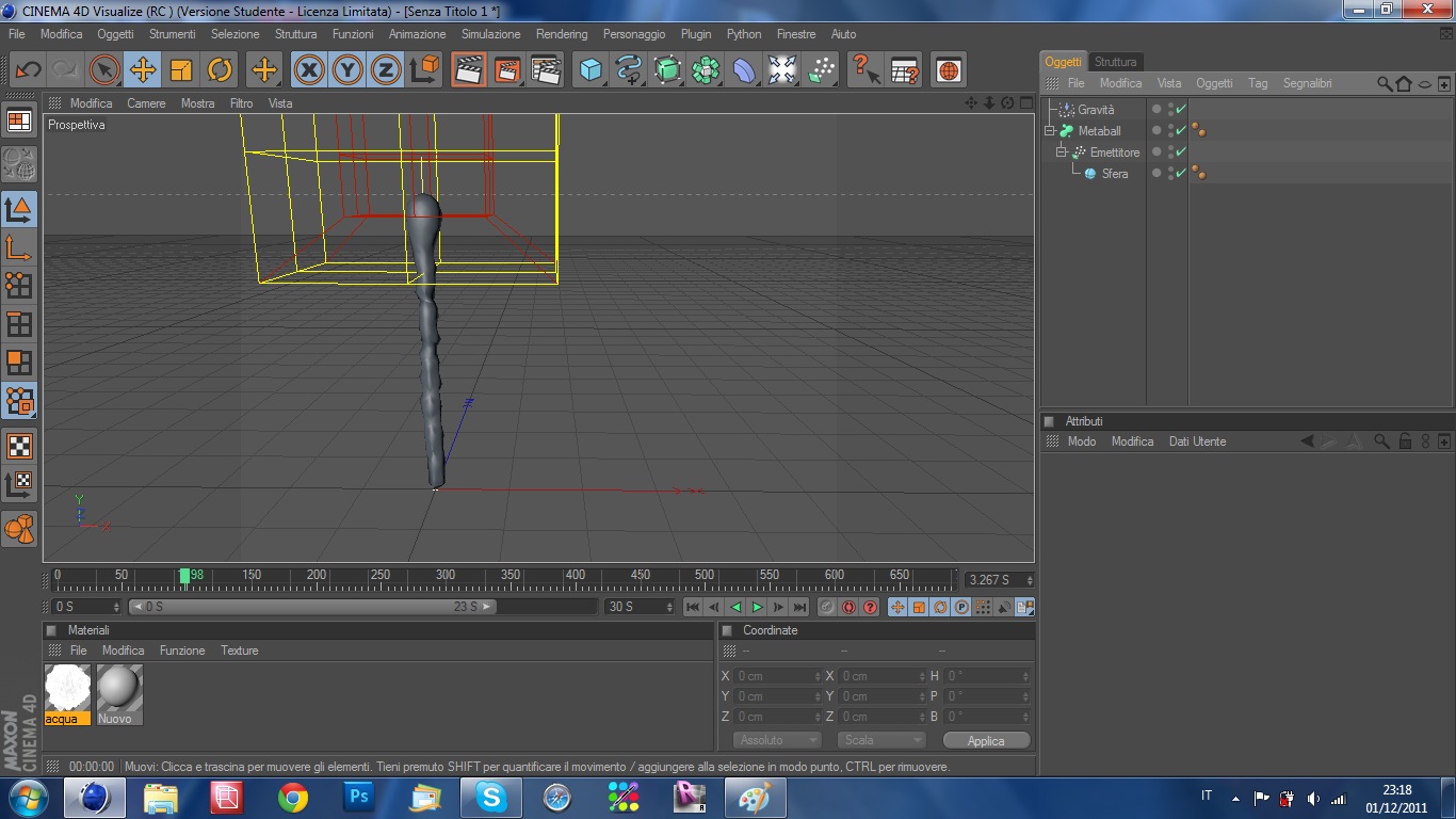 vorrei cimentarmi in questa avventura con le metaball ed emettitore per cercare di creare un getto di una fontana.