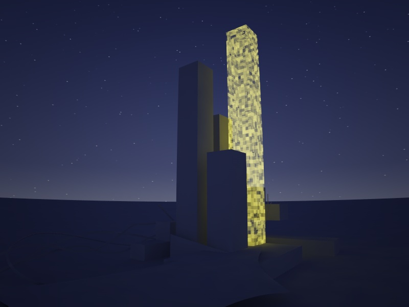 ho provato anche ad illuminare le torri con un materiale con solo il canale luminanza attivo,con al suo interno un canale noise,