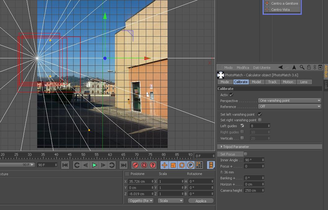 Il fabbricato in primo piano ti consente di trovare una fuga (quella che va verso sinistra), non avendo il prospetto ortogonale al prospetto che si vede sulla foto non si riesce a proiettare le rete verso il secondo punto di fuga.