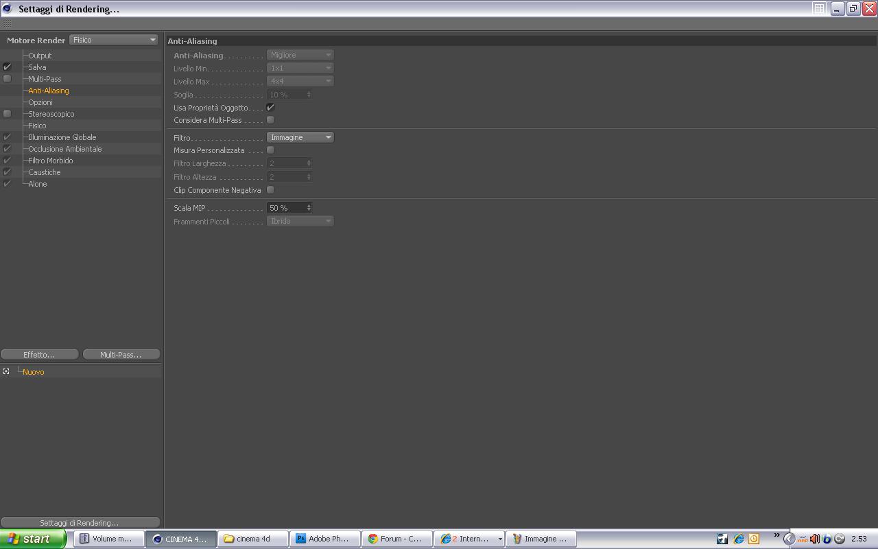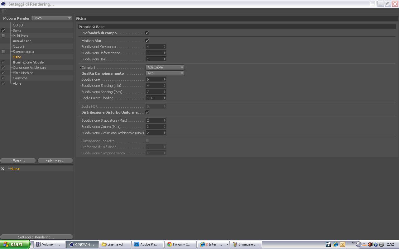 ora provo a postare tutti i settaggi...cosi mi potete dare tutti i consigli che volete...