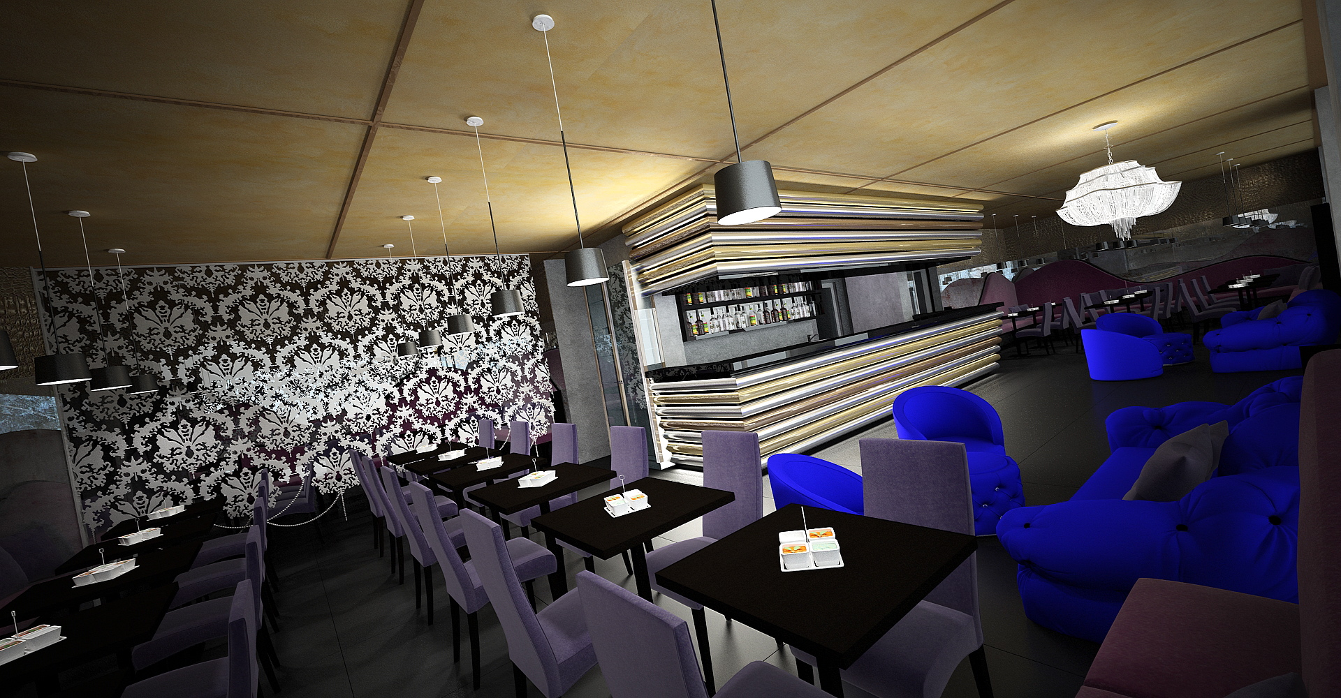 -le lampade a sospensione nere sembra che illuminino solo verso il basso (e credo che ciò sia poco verosimile)