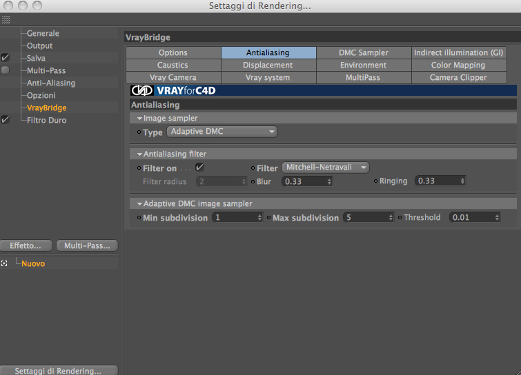 Allego le impostazioni di color mapping e Antialiasing